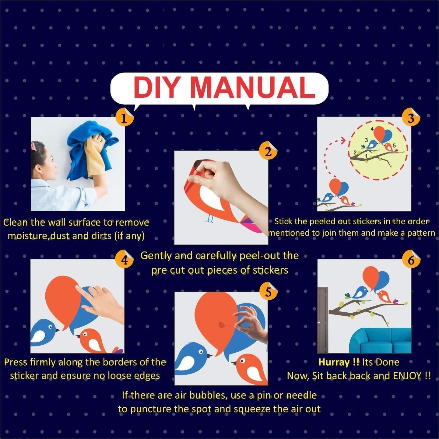 • Applicable surfaces: suitable well for smooth surfaces, such as kinds of walls, glass, mirrors, metal, wood, etc. It is also suitable for decorating your bedroom, living room or children's room, as well as for walls or windows.